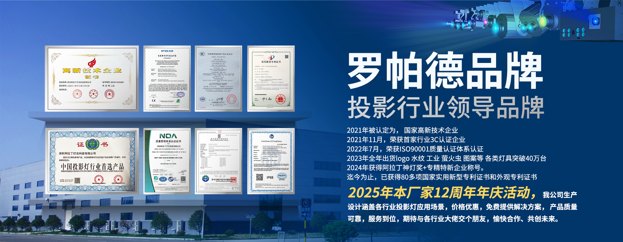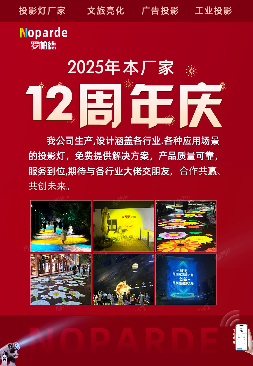 深圳百汇利—旗下品牌罗帕德,专业服务于文旅亮化投影灯、行车航吊警示投影灯、动态水纹投影灯、logo广告投影灯,等各种场景投影灯生产销售